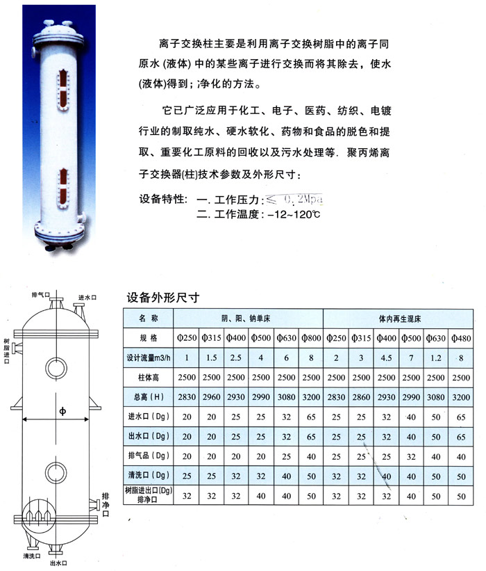 產(chǎn)品名稱: 聚丙烯離子交換柱